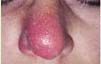 Robert P. Blereau, MD, of Morgan City, La, writes that the patient's nasal erythema began to clear shortly after antibiotic therapy was initiated. However, 5 days into treatment, 2 pustules at the right side of the nose started to drain, and the erythema worsened. Apparently, resistance to the ciprofloxacin had developed.