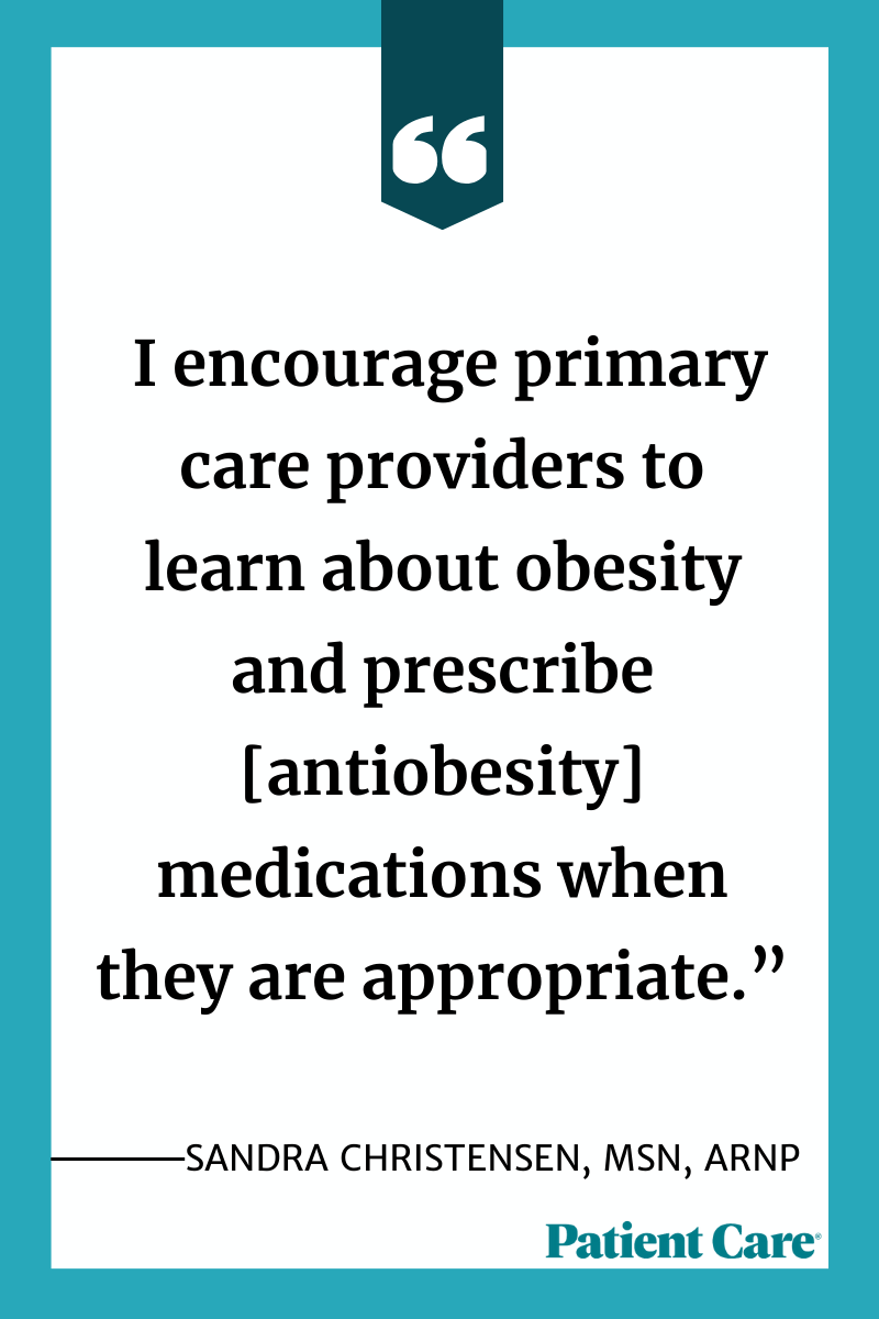 How can primary care clinicians incorporate antiobesity medication into a treatment plan for patients with obesity? "I encourage primary care providers to learn about obesity and prescribe [antiobesity] medications when they are appropriate," said Sandra Christensen, MSN, ARNP, in an interview with Patient Care Online. “Antiobesity medications work best when they are part of a comprehensive plan, so when you are also giving people nutritional guidance, physical activity, behavioral counseling, they are going to work the best.”