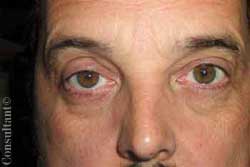 A 47-year-old man presented to the ED with a drooping right eye and complained of a constant right-sided headache that involved the temporal region. Mild right-sided ptosis and miosis were noted. The patient had Horner syndrome, a functional sympathectomy of the ipsilateral eye caused by injury or disruption of the neural plexus that runs from the sympathetic chain, past the apex of the lung, and up the carotid artery to the eye.