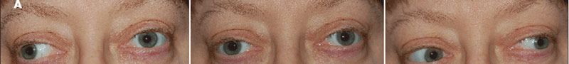 An obese 50-year-old woman with type 2 diabetes mellitus, hypercholesterolemia, and hypertension had blurry vision in both eyes. Assessment of extraocular motility showed an adduction deficit of the left eye. Imaging results confirmed the suspected diagnosis of tumefactive (atypical) multiple sclerosis, a rare form of demyelinating disease characterized by atypical MRI findings of mass-like demyelination.