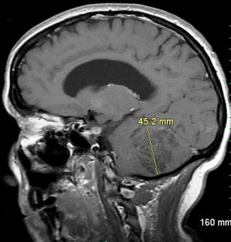 A 39-year-old woman presented with 2-month history of progressively worsening headache and right-sided ataxia. Brain MRI showed a nonenhancing, T1 hypointense mass on the right cerebellar hemisphere, consistent with Lhermitte-Duclos disease.