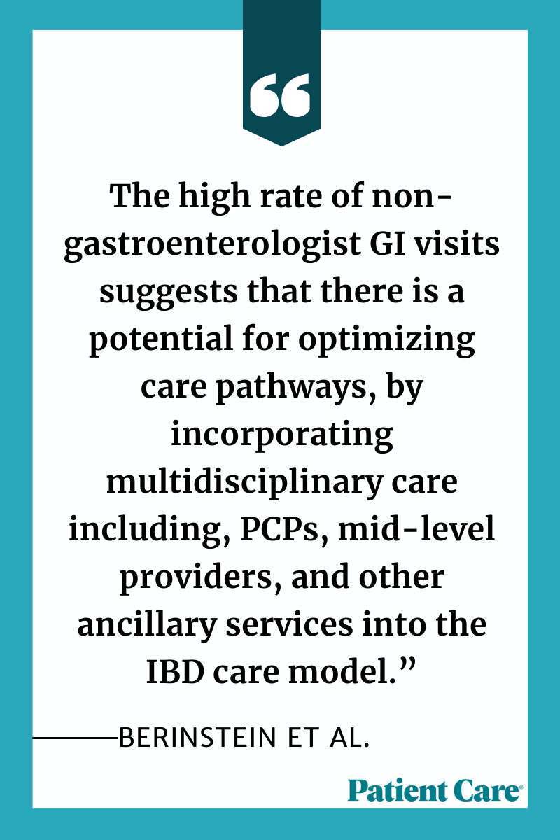 “While appropriate high-cost pharmaceutical utilization should not be reduced, innovative strategies leveraging more cost-effective medication delivery may provide an important opportunity to curb costs,” concluded Berinstein et al. “Furthermore, the high rate of non-gastroenterologist GI visits suggests that there is a potential for optimizing care pathways, by incorporating multidisciplinary care including, PCPs, mid-level providers, and other ancillary services into the IBD care model.”