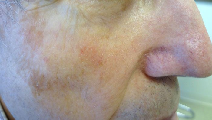 Key point: There was a subtle area of asymptomatic discoloration under his right eye. Notably, there was also some increased vascularity in the area. A biopsy showed nodular basal cell carcinoma.