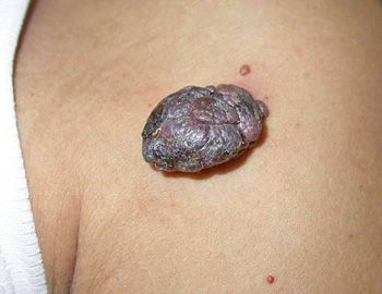 A 36-year-old presents for evaluation of a rapidly enlarging nodule on the shoulder.