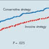 Figure 3 – In a study that compared early invasive and conservative strategies in patients with acute coronary syndromes (ACS) who were treated with the glycoprotein IIb/IIIa inhibitor tirofiban, the percentage of patients in whom the combined end point of death, nonfatal myocardial infarction, or rehospitalization for another ACS was seen was greater throughout 6 months of follow-up in the group that received conservative therapy than in the group treated with an invasive strategy.