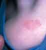 The parents of an 8-year-old boy seekevaluation of a red patch on their son'sshoulder. The asymptomatic spoterupted 2 weeks earlier. The patienthas seasonal allergies and frequentlyplays with his dog.