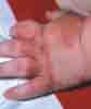 A 14-month-old boy presented with a 1-week history of a spreading, red rashon his left hand. He frequently sucks on the hand. The child is otherwisehealthy; there is no family history of seasonal allergies.