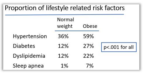 Study authors also report that patients with obesity had the highest proportion of all medical risk factors, as well as a risk factor burden nearly twice as high as those with normal BMI.