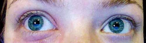 A 20-year-old woman reported an acute onset of itching and swelling of the right eye. She had a swollen, erythematous lower right eyelid and macular erythema of the right infraorbital skin. Wearing "paste on" fingernail decorations, she had used her fingers to hold her lower lids down and insert contact lenses. The diagnosis was contact dermatitis.
