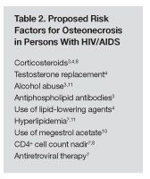 An increased incidence of previously recognized risk factors for osteonecrosis in other patient populations, such as corticosteroid use, hypercoagulable states (anticardiolipin antibodies), and alcohol abuse, has been associated with osteonecrosis in HIV-infected patients. In addition, other reported risk factors include testosterone replacement, use of megestrol acetate, the presence of lipodystrophy syndrome, and use of lipid-lowering agents.3,4,6-10 Most reports of osteonecrosis in HIV-infected patients have identified the presence of one or more recognized risk factors, especially the use of systemic corticosteroids, although in some of these patients, no risk factors could be identified.4,7,9-11