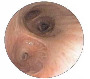 Most patients with an accessory cardiac bronchus are asymptomatic, and the diagnosis is based on fiberoptic bronchoscopy or imaging studies obtained for unrelated reasons.5,8 When present, the symptoms are consistent with recurrent pulmonary infections or hemoptysis.5,13-16