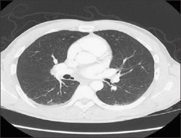 The patient's CT scan showed an anomalous bronchus arising from the medial wall of the bronchus intermedius and descending inferomedially toward the heart. However, no pulmonary parenchyma was seen surrounding the bronchus. Based on its location, this anomaly was identified as an accessory cardiac bronchus.