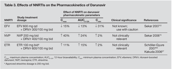Tables 3 and 4 provide a summary of the pharmacokinetic interactions between DRV/r and efavirenz, nevirapine, and etravirine.