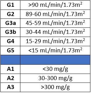 CKD stages were defined by eGFR (represented by G1-G5) and ACR (represented by A1-A3):