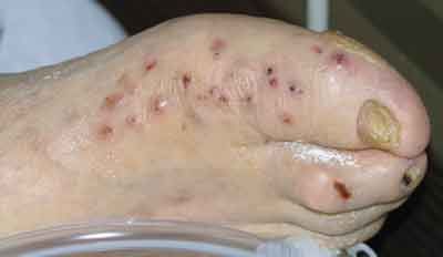 A fungal folliculitis (Majocchi granulomas) (Figure) can occur if a superficial fungal infection is treated with topical corticosteroids. Fungal folliculitis is best treated with a short course of oral itraconazole or fluconazole.