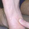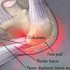 EVALUATIONPhysical examination. Palpation over the medial tubercle of the calcaneus usually reproduces the pain of plantar fasciitis (Figure 2). In severe cases, palpation over the proximal portion of the plantar fascia also may reproduce the pain. Other maneuvers that may replicate the pain include passive dorsiflexion of the toes with weight bearing or having the patient stand on tiptoe and toe-walk. Affected patients may also have a flat foot, high arch, or excessively pronated foot. A tight heel cord with decreased dorsiflexion of the ankle is another potential finding. A typical presentation helps distinguish plantar fasciitis from other causes of heel pain, such as fat pad atrophy (often seen in the elderly) and bone lesions (eg, fracture, tumor, and infection).