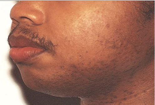 Acanthosis nigricans may be seen in adolescents with PCOS, particularly those who are obese (Figure 3). This velvety hyperpigmentation and thickening of the skin is most often localized to the intertriginous areas (such as the axilla and neck). Acanthosis nigricans has been associated with both the presence and degree of insulin resistance in hyperandrogenemic girls.2,5,14