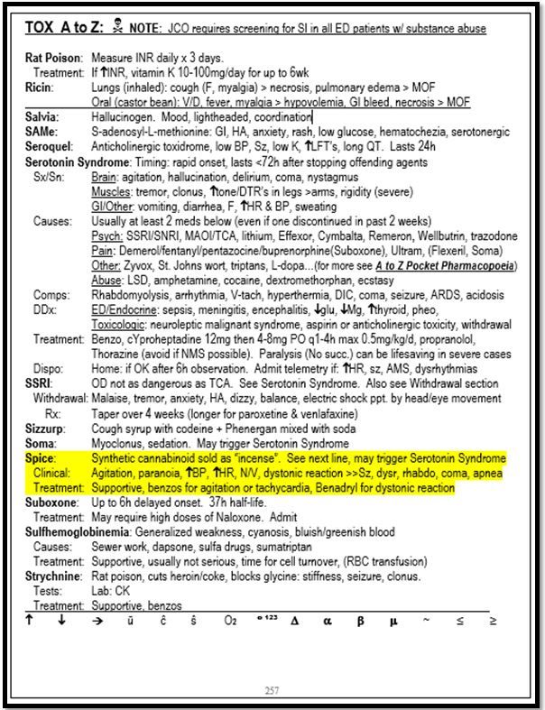 Resource: Spice/K2 toxicity from: The Emergency Medicine 1-Minute Consult Pocketbook