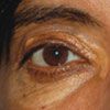 As the disease progresses, jaundice develops. Affected patients may have hepatomegaly, splenomegaly, hyperpigmentation, and clubbing of the fingers. Steatorrhea and malabsorption of lipid-soluble vitamins may occur because of deficiency of bile salts in the intestine and pancreatic exocrine inefficiency.6 Subcutaneous deposition of lipoprotein around the eyes (xanthelasma palpebrarum) and over joints and tendons (xanthoma) may also occur. Other clinical features include bone tenderness, glossitis, dermatitis, ascites, and ecchymosis.2