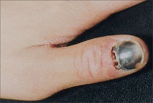Be sure to warn the patient that the nail may be lost, although eventually a new one will grow to replace it. Even more important is to warn the patient that there is a 2% to 15% risk of permanent nail deformity as a result of the initial injury to the nail bed (Figure 5).1