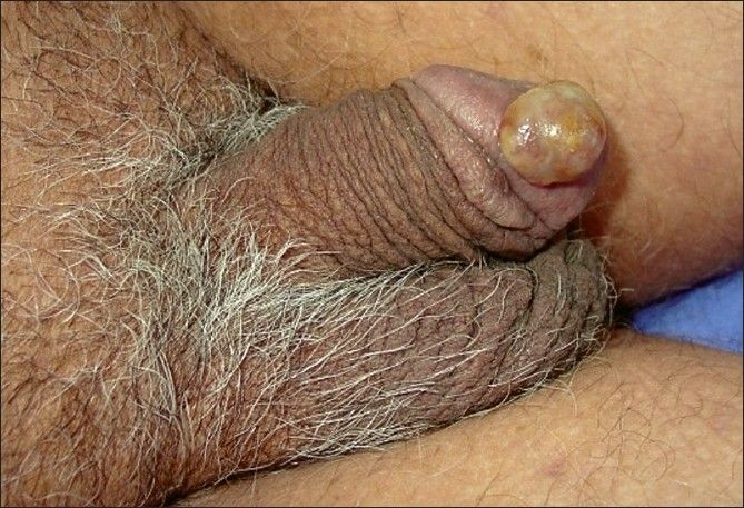 A large, asymptomatic nodule developed on the head of the penis of a 68-year-old man who was otherwise in good health. The patient had palpable, but painless, bilateral inguinal adenopathy.