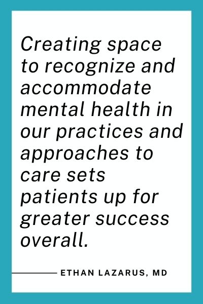 When the health care community prioritizes person-first approaches to care that focus on who the patient is and what they can do instead of their condition, patients feel safe, supported, and respected. Creating space to recognize and accommodate mental health in our practices and approaches to care sets patients up for greater success overall. By prioritizing the balance between mental health and physical health, we help our patients strike a better balance in life.