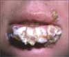 Impetigo is characterized by honey-crusted lesions; it is much more common in children than in adults and is generally not associated with systemic symptoms. Oral candidiasis would be unlikely in an immunocompetent person, such as this patient, who is not taking antibiotics or corticosteroids. Lichen planus usually presents as a white, lacey area on the buccal mucosa and lips. The lesions associated with herpangina typically develop on the oropharyngeal structures.