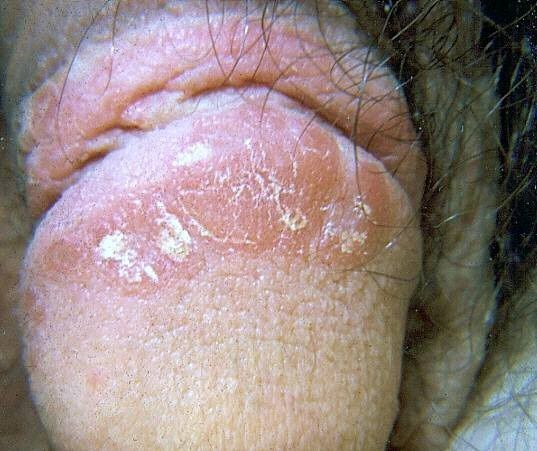 Note: The most important differential diagnostic possibilities include seborrhea and balanitis circinata associated with Reiter disease.