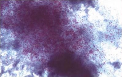 After 1 week of incubation, the aerobic culture was positive for a Gram-positive branching, partially acid-fast organism (Figure 4), which was later identified as N asteroides. The isolate was susceptible to ceftriaxone, amoxicillin/clavulanate, and trimethoprim/sulfamethoxazole (TMP/SMX) and was resistant to amikacin, imipenem, and tobramycin.