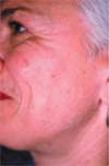 This 50-year-old woman has had acne for several months. She started hormone replacement therapy just before the outbreaks began, but she had not had any other eruptions since her teenage years. She takes no other medications and has not changed her cleansing routine or cosmetics.