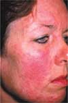 This 37-year-old woman presents for evaluation of a slowly worsening acneiform eruption on her face and trunk of 1 week's duration. She had started erythromycin 1 week earlier for an upper respiratory tract infection that resolved uneventfully. She is taking no other medications and denies any exposure history. She has not changed bathing habits or moisturizers.