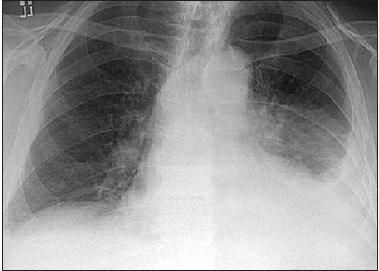Figure 2 – A chest radiograph obtained on admission demonstrated a moderate left-sided pleural effusion.