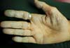 In their case report, however, the authors did not discuss what appears to bemarked thenar atrophy or the patient's extremely tight rings. The transverse markingson the volar aspect of the wrist are also of interest-or perhaps they are onlyskin creases.