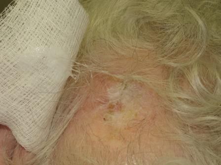 Figure 1. Erosion on right frontal scalp area. (Click)
