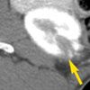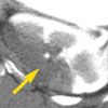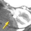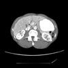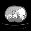 CT scans of the abdomen showed acute infarcts in the medial upper pole and lateral lower pole of the left kidney (Figure). There was no vascular disease in the abdominal aorta, celiac artery, or superior mesenteric arteries. No definite plaque lesions were seen in the right or left renal arteries.