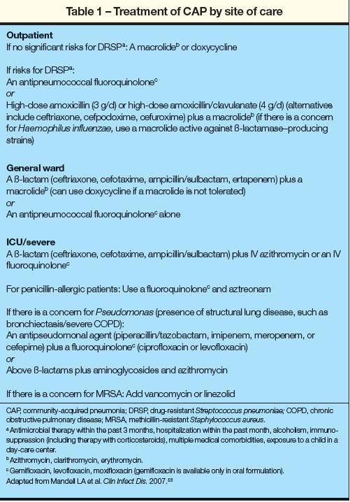 Mandell LA, Wunderink RG, Anzueto A, et al. Infectious Diseases Society of America/American Thoracic Society consensus guidelines on the management of community-acquired pneumonia in adults.