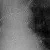 Abdominal pulsations can result from inappropriate electrode placement near the diaphragm or from left phrenic nerve stimulation caused by epicardial pacing. Diaphragmatic stimulation is common with middle cardiac vein pacing because of the higher threshold required2; however, this may not become apparent until after the procedure. The higher threshold may be the earliest clue to incorrect electrode placement. Symptoms can be eliminated by lowering the pacemaker output current or by repositioning the electrode. Pacing electrodes inadvertently placed in the coronary sinus system can be left alone in asymptomatic patients, because the depolarization pattern may resemble physiologic patterns.3 However, the presence of pacing electrodes in the LV is associated with a 37% cerebral embolic rate, and full-dose anticoagulation is recommended.4 Consider surgery for patients in whom the lead reached the LV as a result of ventricular septal perforation.