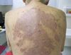 A. A large, intensely pruritic rash on the back of a man with diabetes.