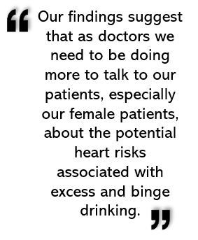 “When it comes to heart disease, the number one thing that comes to mind is smoking, and we do not think about alcohol as one of the vital signs. I think a lot more awareness is needed, and alcohol should be part of routine health assessments moving forward,” Rana said.2 Further “Our findings suggest that as doctors we need to be doing more to talk to our patients — especially our female patients — about the potential heart risks associated with excess and binge drinking.”2