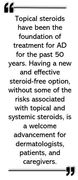 “Topical steroids have been the foundation of treatment for AD for the past 50 years. Having a new and effective steroid-free option, without some of the risks associated with topical and systemic steroids, is a welcome advancement for dermatologists, patients, and caregivers,” investigator Eichenfield said.