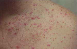 What clues in the history point to the cause of this itchy, scaly eruption?