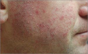 A drug reaction is a possibility, but such reactions do not feature as much scale as is seen here. The same is true of erythema multiforme. The distribution of this patient’s rash would be highly unusual for asteatotic eczema. Scabies typically does not involve the face or scalp.
