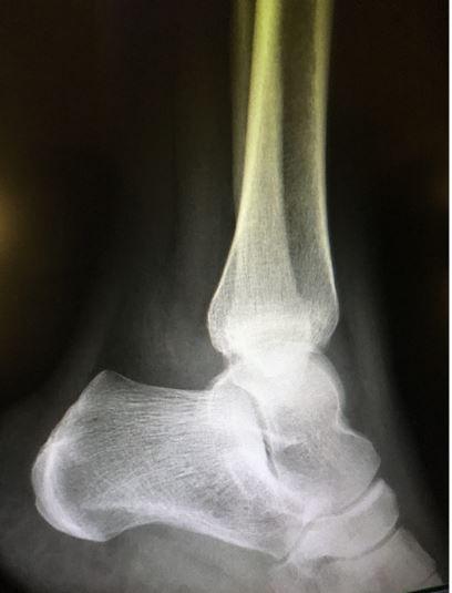 Vital signs & physical examination. Vital signs are normal. Physical exam is normal except for lateral ankle tenderness and mild swelling. There is no knee or foot tenderness.
