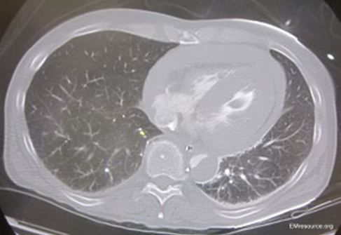 The patient is a man in his mid-60s seen in the ED for dyspnea and diaphoresis which began an hour ago and came on suddenly. He has no chest pain. Can you Dx?