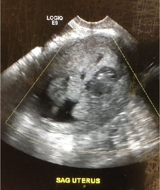 Patient history. A 42-year-old woman who is G2P1 and approximately 6 weeks pregnant is sent from her clinic to the emergency department for 1 week of vaginal spotting and 4 days of pelvic pain. She denies any fever, dysuria, vomiting, or other complaints.