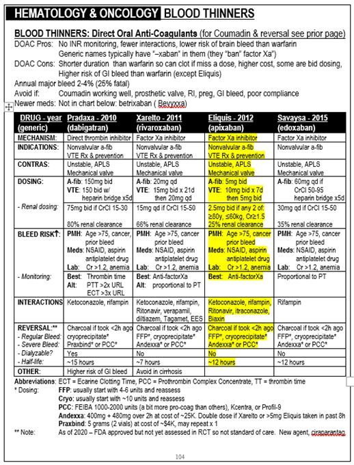 Blood Thinners fromThe Emergency Medicine 1-Minute Consult Pocketbook