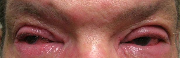 A 53-year-old man presented for medical attention after borrowing his wife’s eye drops. He had some itching in the eyes, and started intraocular installation of these drops twice a day for 3 days before the sudden appearance of swollen, itchy red eyes.