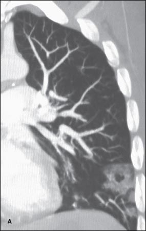 Septic pulmonary embolism is an uncommon disorder that generally presents with an insidious onset; characteristic features include fever and lung infiltrates associated with an active focus of extrapulmonary infection.1,2 Risk factors are injection drug use, indwelling catheters/ devices, pelvic thrombophlebitis, and suppurative processes in the head and neck.3,4 The embolic blood clot that leads to an infarction and the microorganisms contained in the clot incite a focal abscess.4