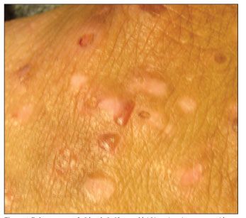 2. Zancanaro PC, McGirt LY, Mamelak AJ, et al. Cutaneous manifestations of HIV in the era of highly active antiretroviral therapy: an institutional urban clinic experience. J Am Acad Dermatol. 2006;54:581-588.