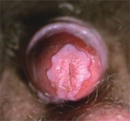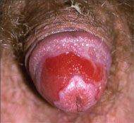 For 2 months, a 27-year-old man has had this worsening rash on the head of the penis. He denies any history of trauma. What do you suspect?